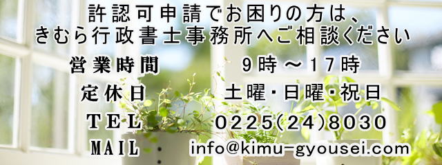 ます。許認可申請でお困りの方は、きむら行政書士事務所へご相談ください。